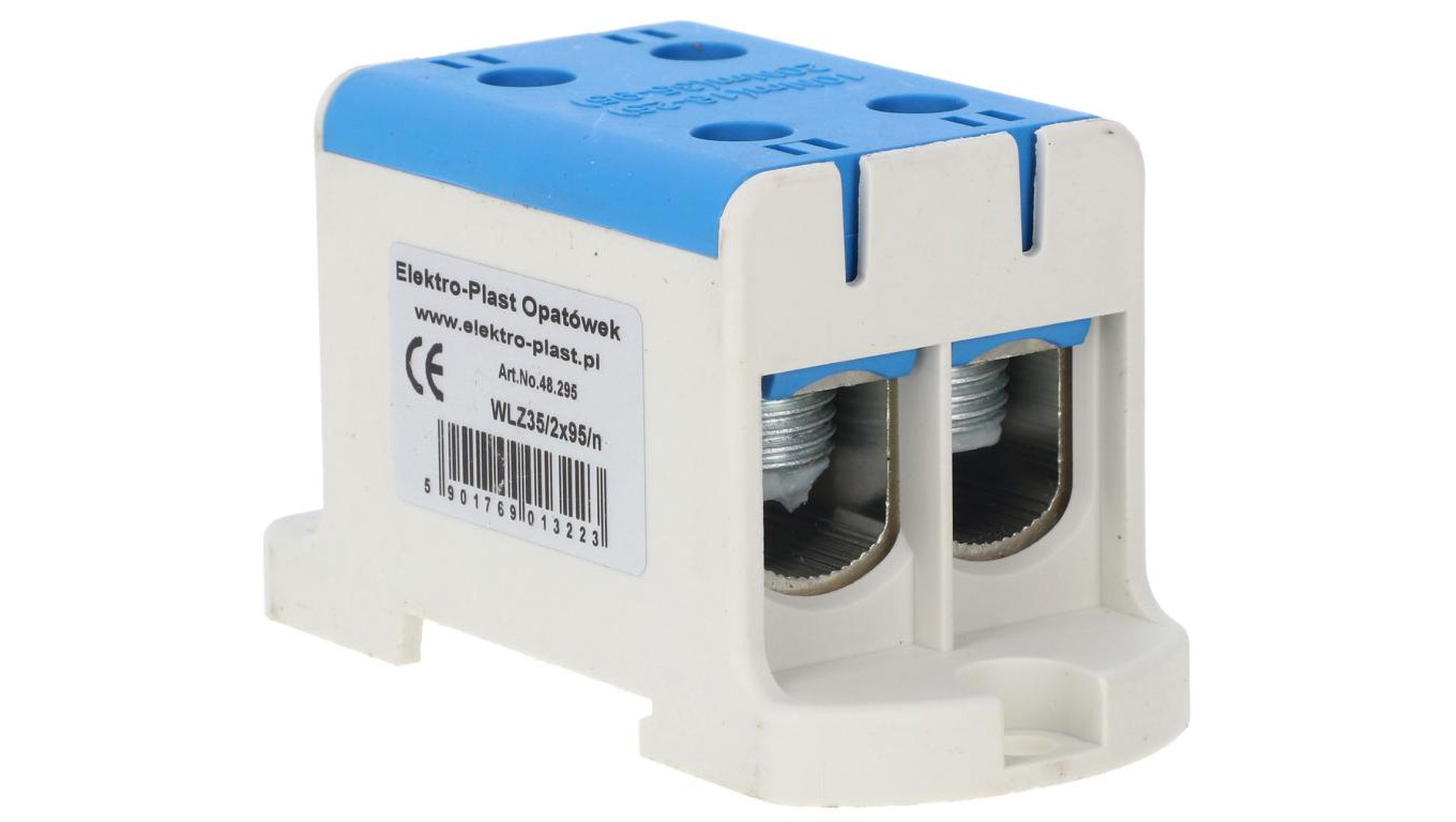 Blok rozdzielczy-odgałęźny 2×1-biegun AL/CU 16-95mm2 niebieski montaż płaski i na szynę TH WLZ35/2×95/n 48.295