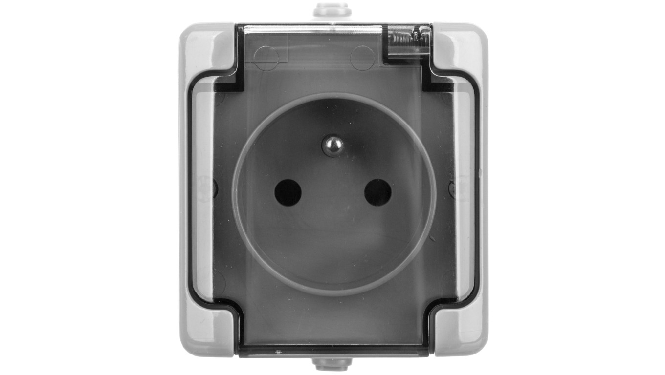 BRYZA Gniazdo hermetyczne pojedyncze z/u IP54 z klapką dymną szare 180032