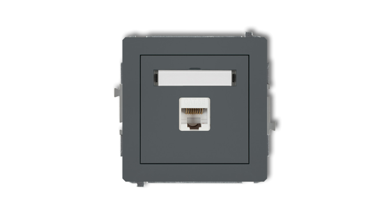 DECO Gniazdo komputerowe pojedyncze 1xRJ45, kat. 5e, 8-stykowy grafitowy mat 28DGK-1