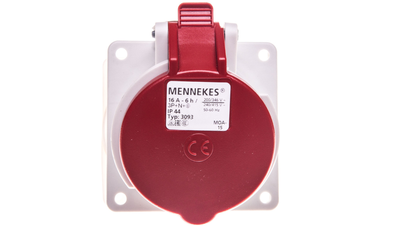 Gniazdo tablicowe skośne 5P 16A 400V czerwone IP44 3093 MEN3093