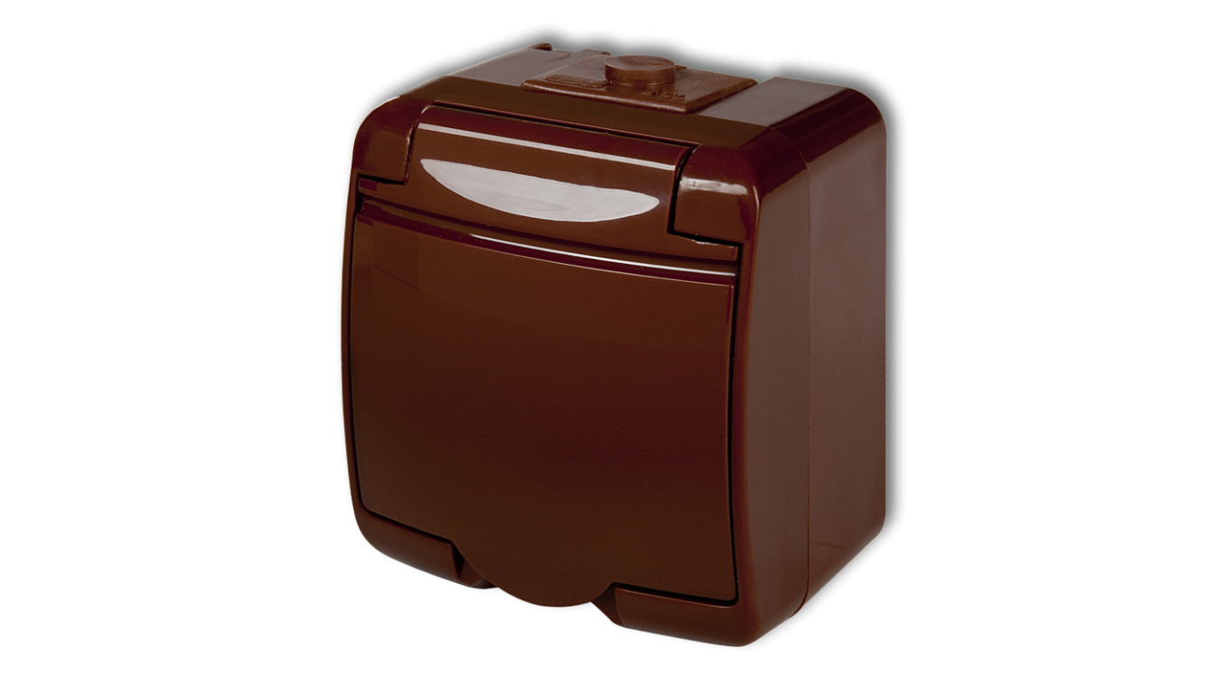 JUNIOR Gniazdo pojedyncze z/u (klapka brązowa) brązowy IP54 4GHE-1