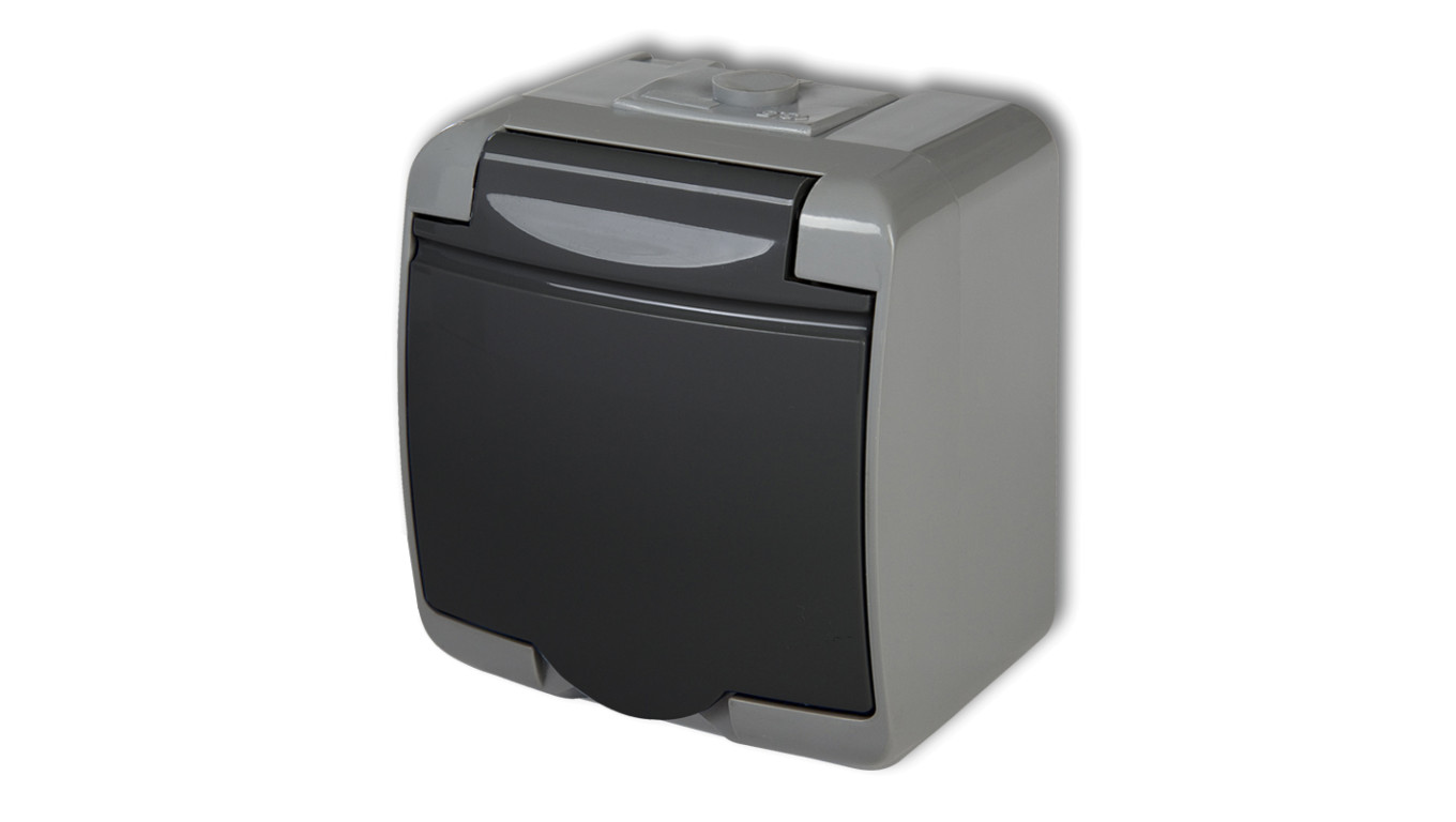 JUNIOR Gniazdo pojedyncze z/u (klapka grafitowa) popielaty / grafitowy IP54 30GHE-1