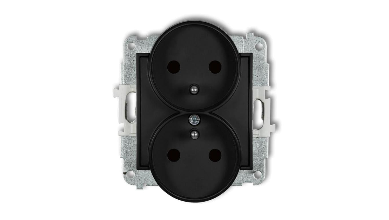 MINI Gniazdo podwójne z/u z przesłonami czarny mat 12MGPR-2zp