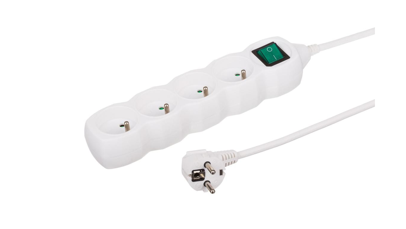 Przedłużacz 4-gniazdowy, 1,5m biały, z wyłącznikiem, 3×1,0mm OWY 35415