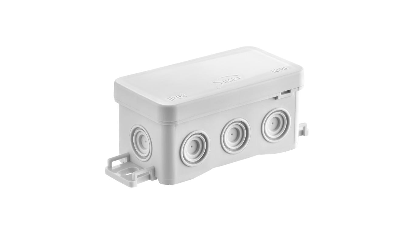 Puszka naścienna 45x40x85mm z dławnicą zintegrowaną samozatrzaskowa, bezhalogenowa, seria FASTBOXiHOOK szara IP54 NS8 35357102