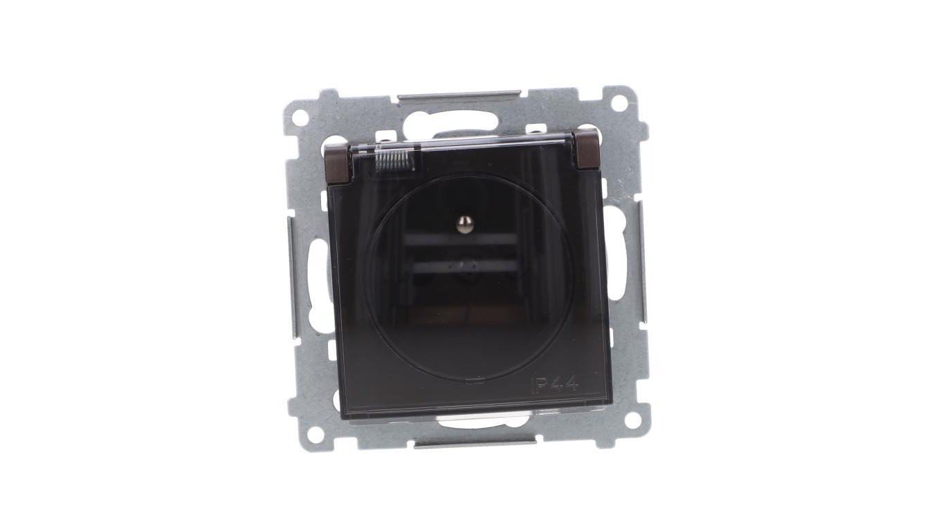 Simon 54 Gniazdo bryzgoszczelne (bez uszczelki) IP44 z przesłoną torów z klapką brąz mat DGZ1BUZ.01/46A