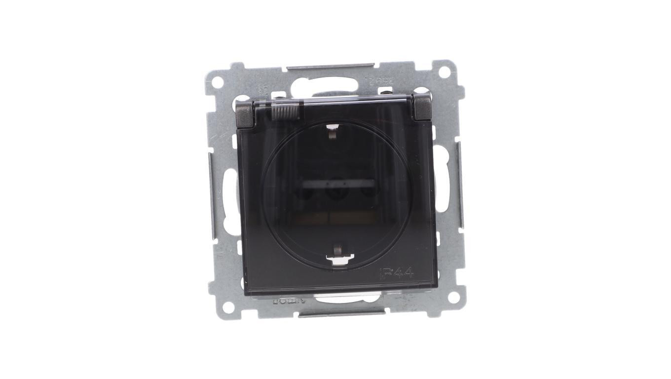 Simon 54 Gniazdo Schuko do wersji IP44 z przesłonami z uszczelką klapka transparentna antracyt DGSZ1BZ.01/48A