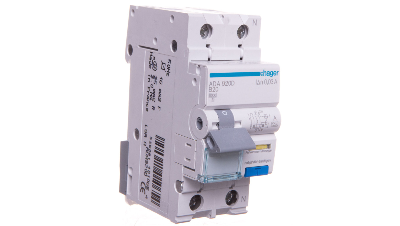 Wyłącznik różnicowo-nadprądowy RCBO 2P B20A 0,03A Typ A ADA920D